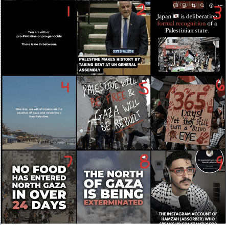 Figure 1: ScreenshotInstagram Feed when ‘Palestine’ is searched on the ‘For You’ page.